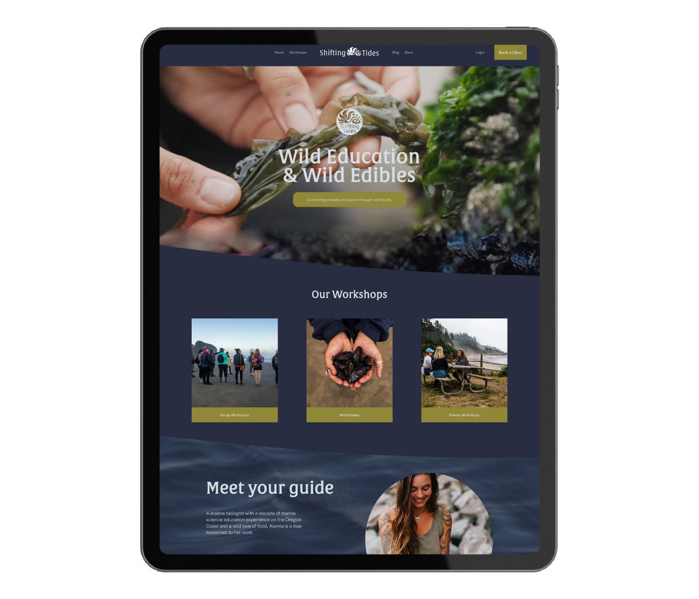 The brand direction was shaped through a deep alignment with the rhythms of the coast and the immersive nature of the experiences themselves. Rooted in education, exploration, and a genuine connection to place, the visual language reflects the raw beauty of the intertidal world. Textures feel natural and unpolished, colors pull from sea, stone, and sky, and the overall tone invites curiosity, presence, and a sense of discovery. It is a brand that feels both grounded and expansive, designed to draw people in and hold their attention a little longer